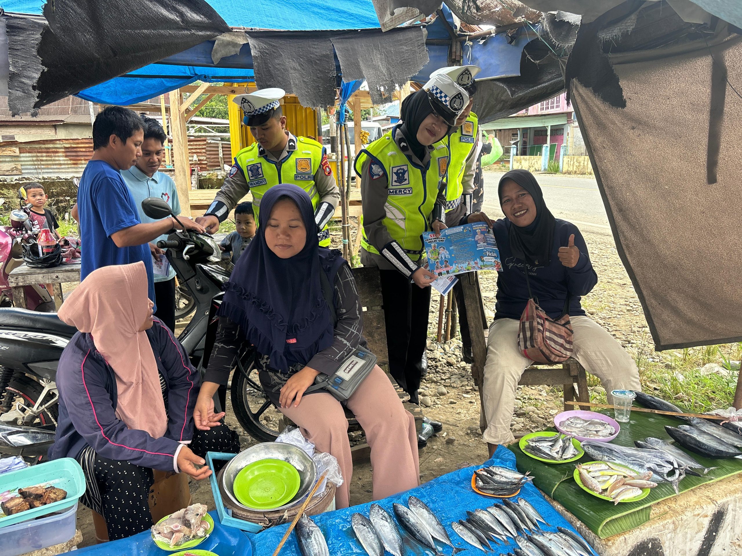 Mamuju, Jurnalsulbar.com – Dalam rangka memperkuat komunikasi dengan masyarakat, Personel Lalu Lintas Polda Sulawesi Barat gencar melaksanakan serangkaian kegiatan sosialisasi, pembagian leaflet, serta stiker terkait tertib berlalu lintas kepada para pengendara kendaraan roda dua (R2) dan roda empat (R4) serta masyarakat yang dijumpai.