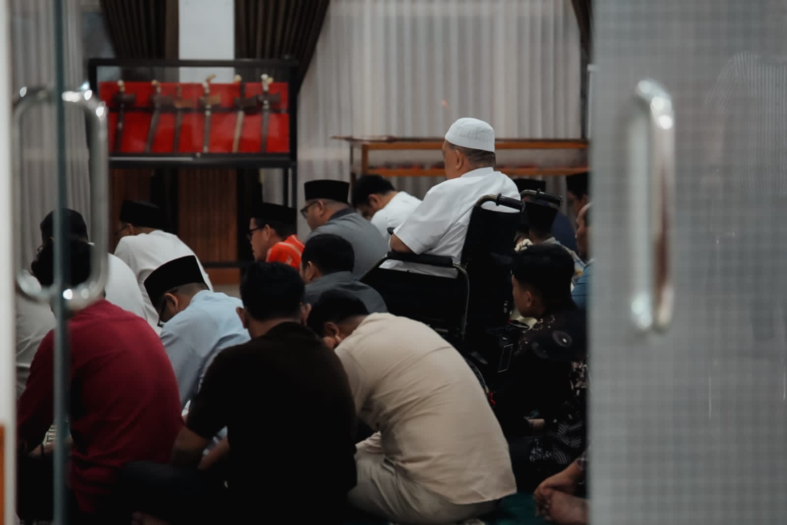 Usai meninjau seluruh ruangan, Wakil Gubernur bersama para staf menggelar momen kebersamaan penuh kekhusyukan. Mereka lebih dulu melakukan adzan secara bersamaan dari sudut ruangan sebagai bentuk rasa syukur atas rampungnya renovasi, kemudian melaksanakan salat berjamaah dan doa bersama memohon kelancaran dalam menjalankan amanah.