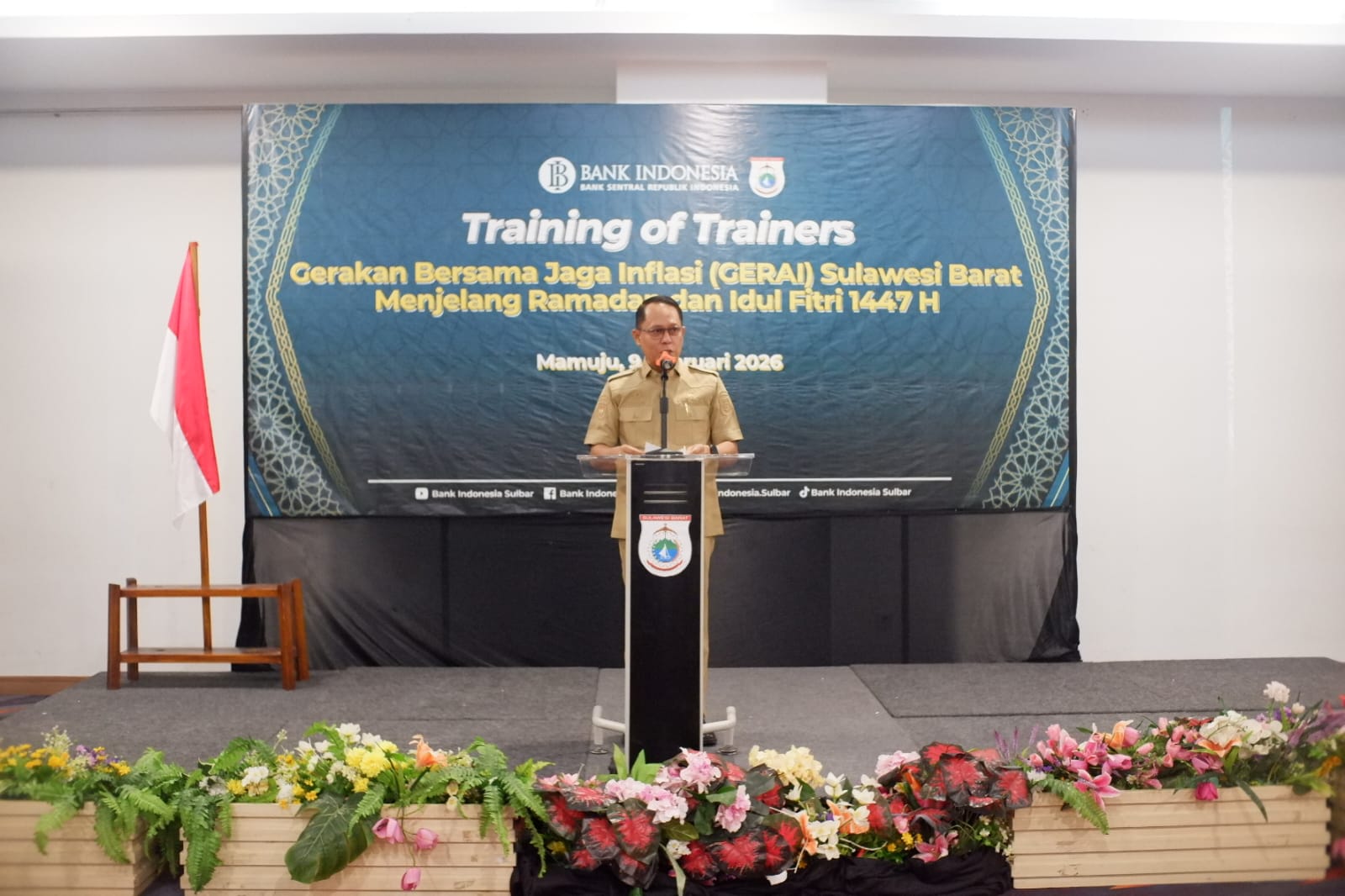 Mamuju, Jurnalsulbar.com — Biro Ekbang Setda Sulbar melalui TPID Prov. Sulbar bekerjasama dengan Bank Indonesia (BI) melaksanakan kegiatan Training of Trainers (ToT) Gerakan Bersama Jaga Inflasi (GERAI) Sulawesi Barat Menjelang Ramadhan dan Idul Fitri 1447 Hijriah, bertempat di Ruang Pertemuan Hotel Matos, Jalan Yos Sudarso Nomor 37, Mamuju. Senin, 9 Februari 2026.