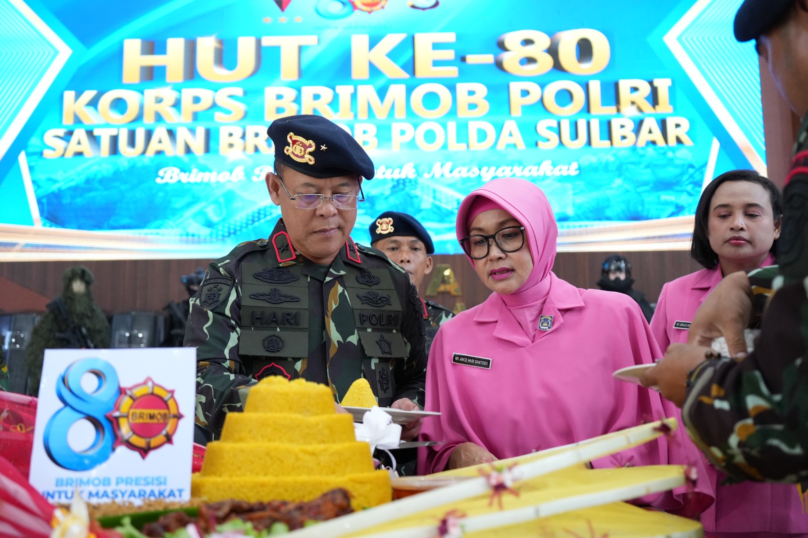 Acara syukuran ini semakin semarak dengan penampilan tarian adat yang memukau, pameran kelengkapan taktis Brimob Polda Sulbar yang menunjukkan kesiapan operasional, serta lantunan nyanyian korps Brimob dan yel-yel yang membangkitkan semangat. Pemotongan tumpeng menjadi simbol rasa syukur dan harapan untuk Brimob yang semakin jaya di masa depan.