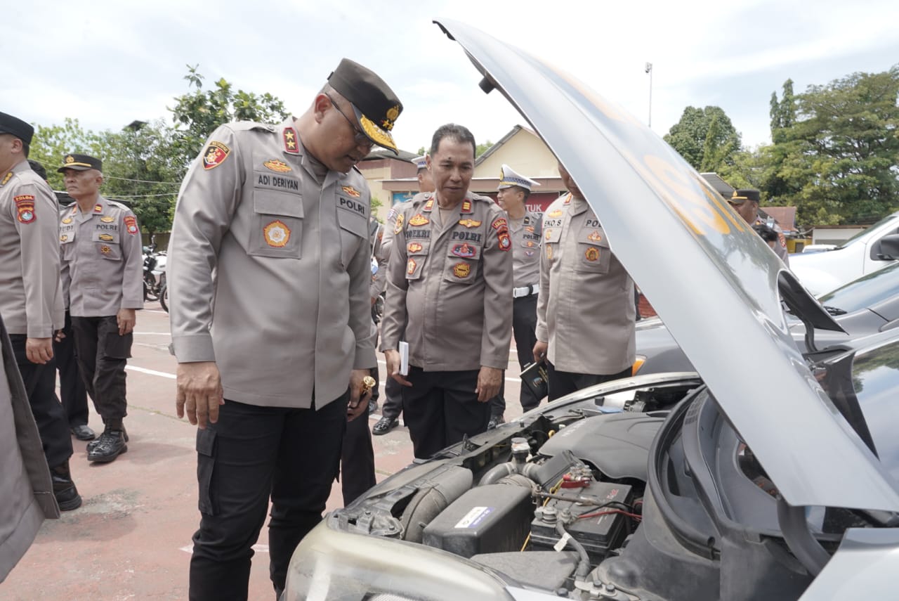 Pengecekan ini meliputi kendaraan roda dua maupun roda empat, termasuk mobil patroli, kendaraan operasional dan sepeda motor Bhabinkamtibmas, guna memastikan armada tersebut selalu dalam kondisi prima dan siap operasional 24 jam.