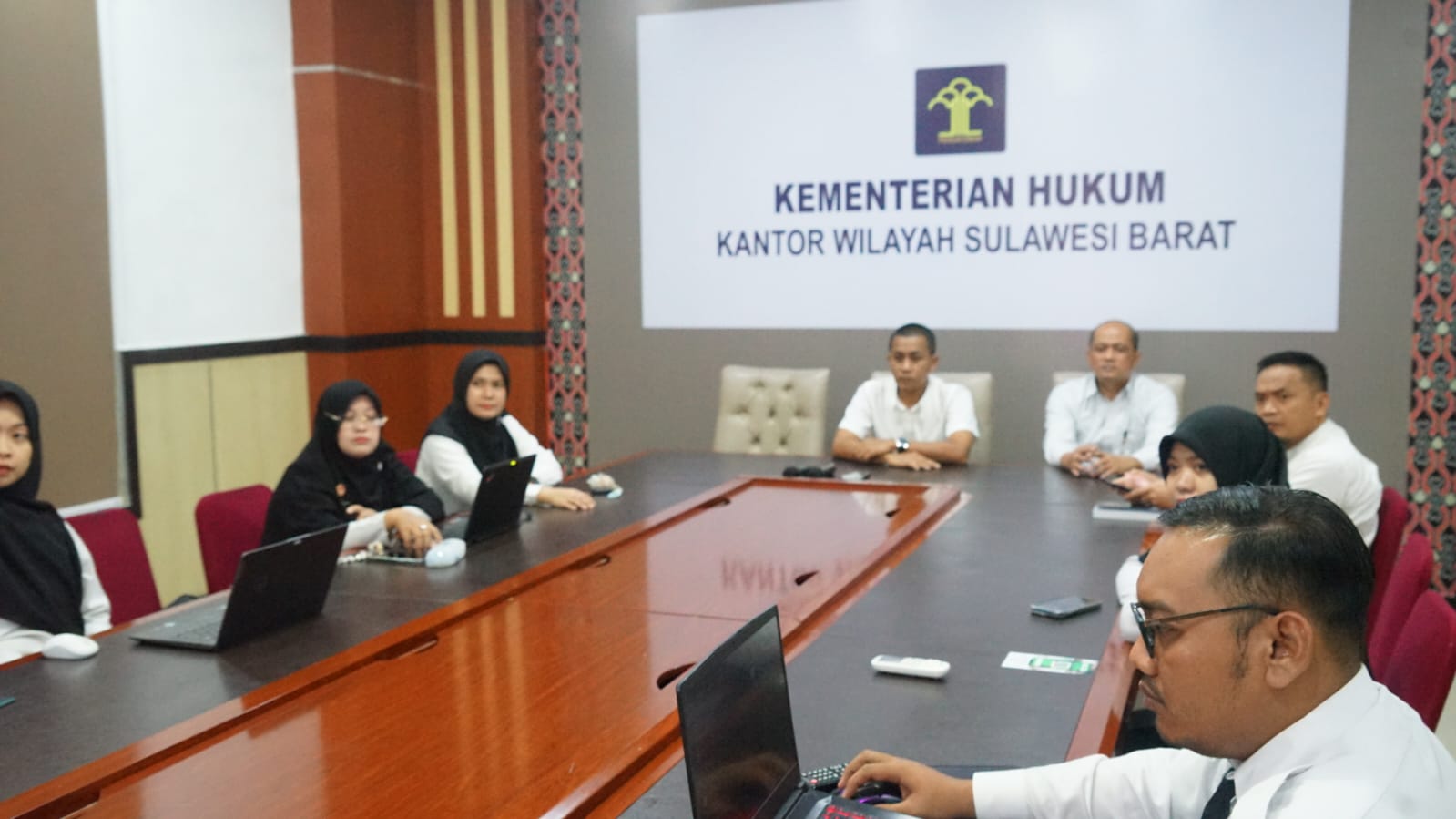 Pelaksanaan kegiatan itu dihadiri langsung oleh Kepala Kantor Wilayah Kementerian Hukum Sulawesi Barat, Sunu Tedy Maranto, Kepala Divisi Peraturan Perundang-undangan dan Pembinaan Hukum (PPPH), John Batara Manikallo, bersama Koordinator dan Tim Perancang Peraturan Perundang-undangan di lingkungan Kanwil Sulawesi Barat. (7/8)
