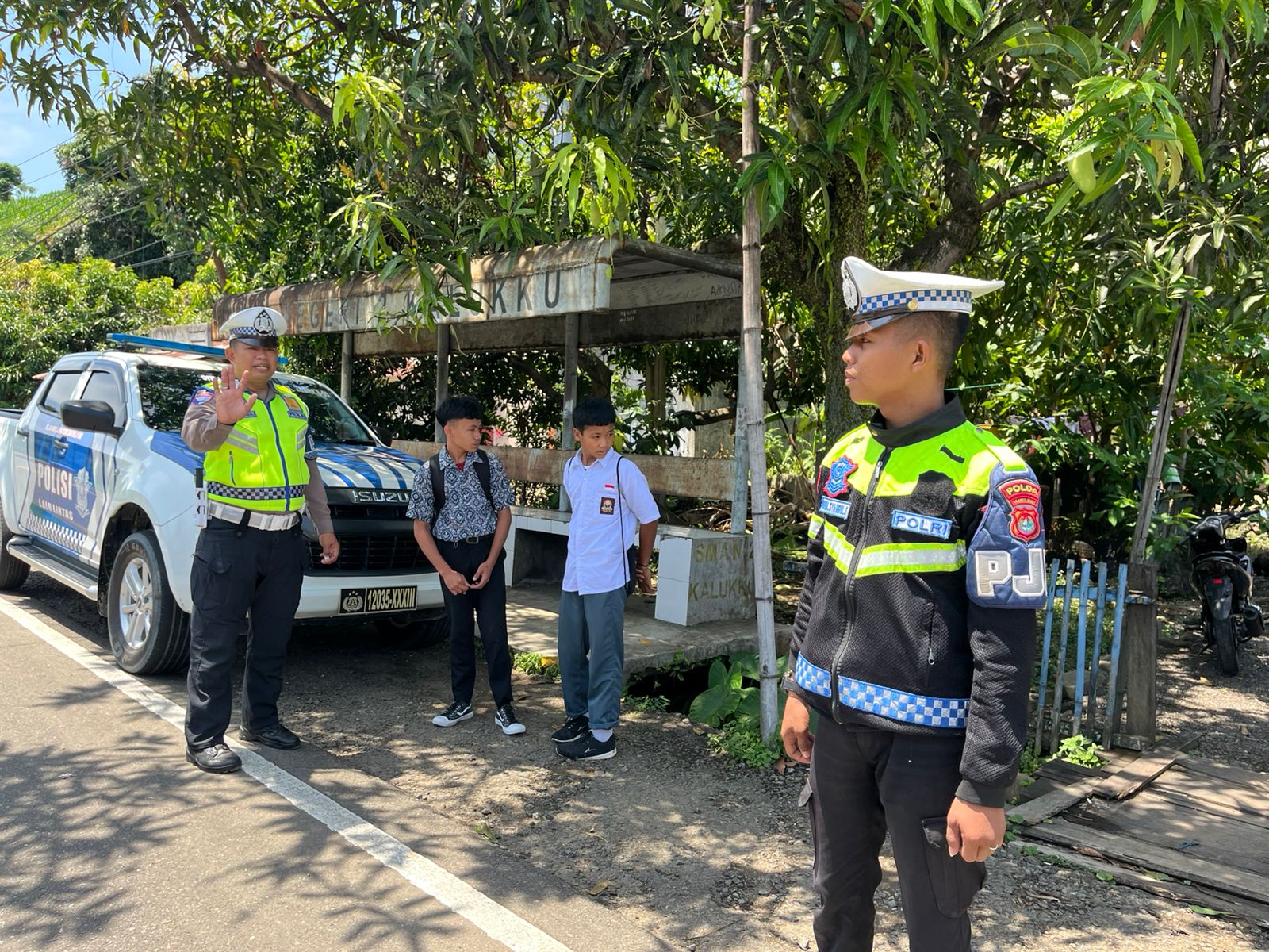 Hari ini, Rabu (22/4/26), personel PJR Ditlantas Polda Sulbar terlihat bertugas dan melakukan pengaturan lalu lintas di beberapa titik sekolah diantaranya SD Negeri Kampung Baru dan SMA Negeri 2 Kalukku.