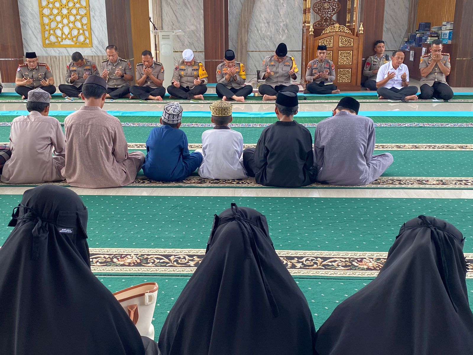 Suasana khusyu juga nampak saat Kapolda dan para jamaah yang hadir melantunkan bacaan Surah Yasin dan dilanjutkan dengan doa bersama untuk keamanan dan kemajuan Sulbar.
