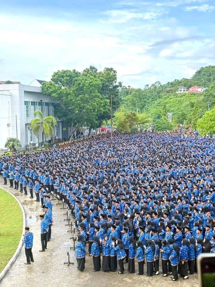 Ribuan PPPK itu terdiri dari 719 guru, 102 tenaga kesehatan, dan 3.358 tenaga teknis. Mereka dikumpulkan dalam satu apel besar sebagai bagian dari proses validasi data penerima SK.