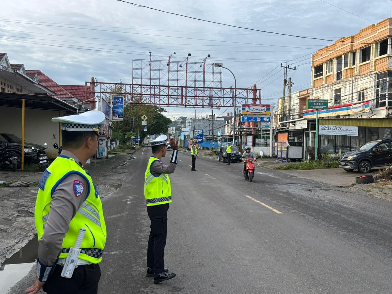Pagi ini, Rabu (7/1/26), personel Ditlantas tampak fokus melakukan pengaturan lalu lintas di setiap persimpangan utama kota Mamuju. Selain mengatur arus kendaraan agar lancar dan terhindar dari kemacetan, para petugas juga secara aktif membantu pejalan kaki dalam menyebrang jalan dengan aman.