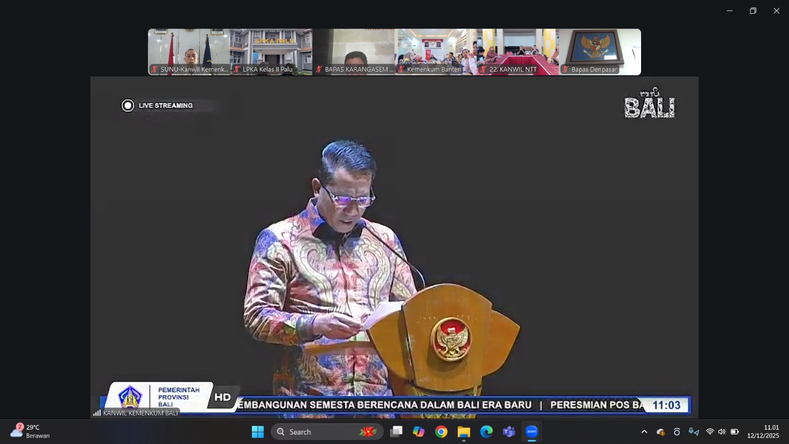 Mamuju, Jurnalsulbar.com — Kakanwil Kemenkum Sulbar, Sunu Tedy Maranto dan Kepala Divisi P3H, John Batara Manikallo serta sejumlah jajaran mengikuti Peresmian Pos Bantuan Hukum Provinsi Bali secara virtual, jumat (12/12/2025).