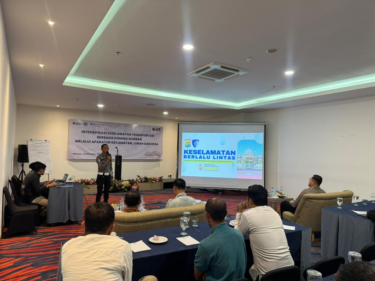 Kolaborasi ini diwujudkan melalui kegiatan “Intensifikasi Keselamatan Transportasi Berbasis Domisili Korban Melalui Aparat Kecamatan, Lurah dan Desa” yang berlangsung di Ballroom Hotel Matos Mamuju, Rabu (19/11/25).