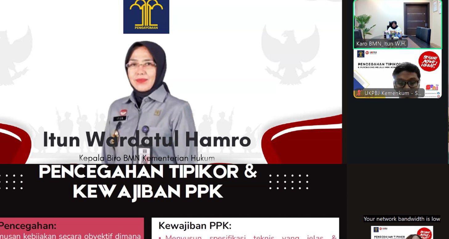 Kepala Biro BMN Itun Wardatul Hamro saat membuka pelaksanaan kegiatan itu mengatakan bahwa webinar ini bertujuan meningkatkan pemahaman tentang pencegahan tindak pidana korupsi (Tipikor) dalam pelaksanaan e-purchasing, “khususnya melalui mekanisme mini kompetisi dan pentingnya peran serta kewajiban Pejabat Pembuat Komitmen (PPK) dalam melengkapi dokumen yang dibutuhkan” sambungnya