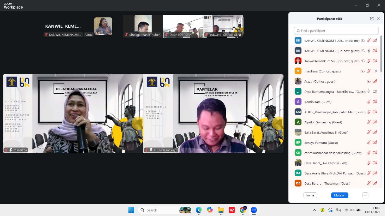 Hal itu disampaikannya pada penutupan pelatihan paralegal khusus yang dilaksanakan secara Virtual, kamis (13/11/2025)