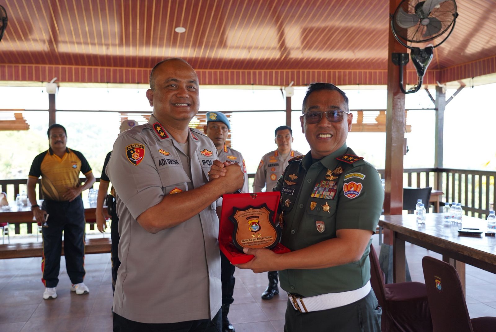 Dalam suasana santai, Kapolda Sulbar dan Danpuspomad berdiskusi mengenai berbagai strategi untuk menjaga kamtibmas yang kondusif.