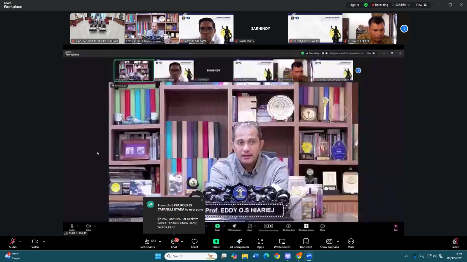 Sementara itu, dalam kesempatan yang sama Wakil Menteri Hukum.Republik Indonesia, Edward Omar Sharif Hiariej dalam sambutannya menyampaikan bahwa ada beberapa faktor yang terkait dengan penegakan hukum yang harus kita pahami bersama, “yakni Substansi, Profesionalisme aparat penegak hukum. Sarana dan prasarana serta yang tak kalah pentingnya adalah kesadaran hukum Masyarakat” ucapnya Wamen