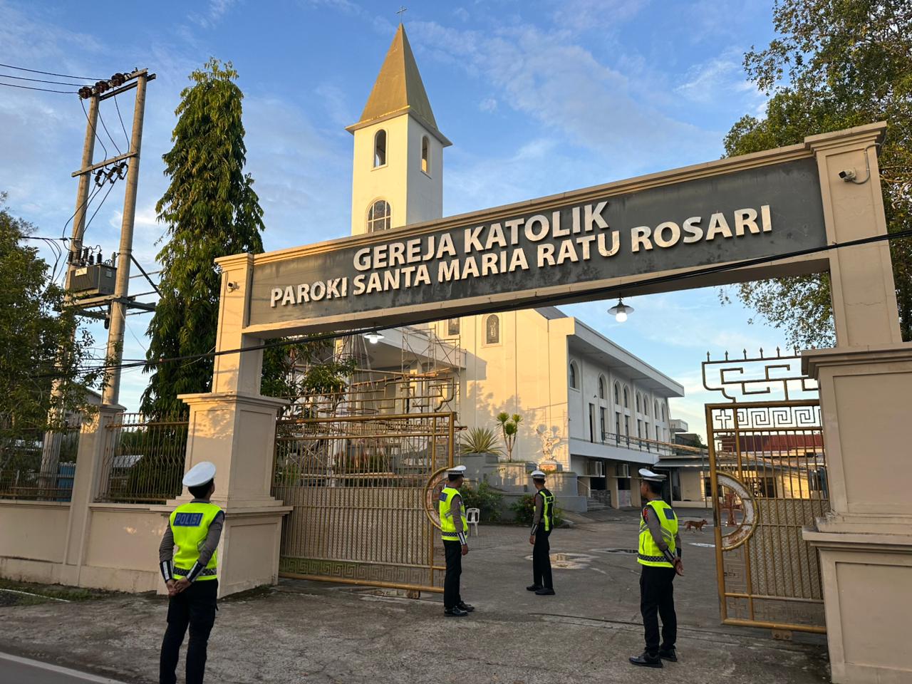 Sejak sore hingga malam, Jumat (19/12/25) personel bergerak menyisir titik-titik rawan kepadatan, khususnya di sekitar gereja yang menggelar rangkaian ibadah Natal.