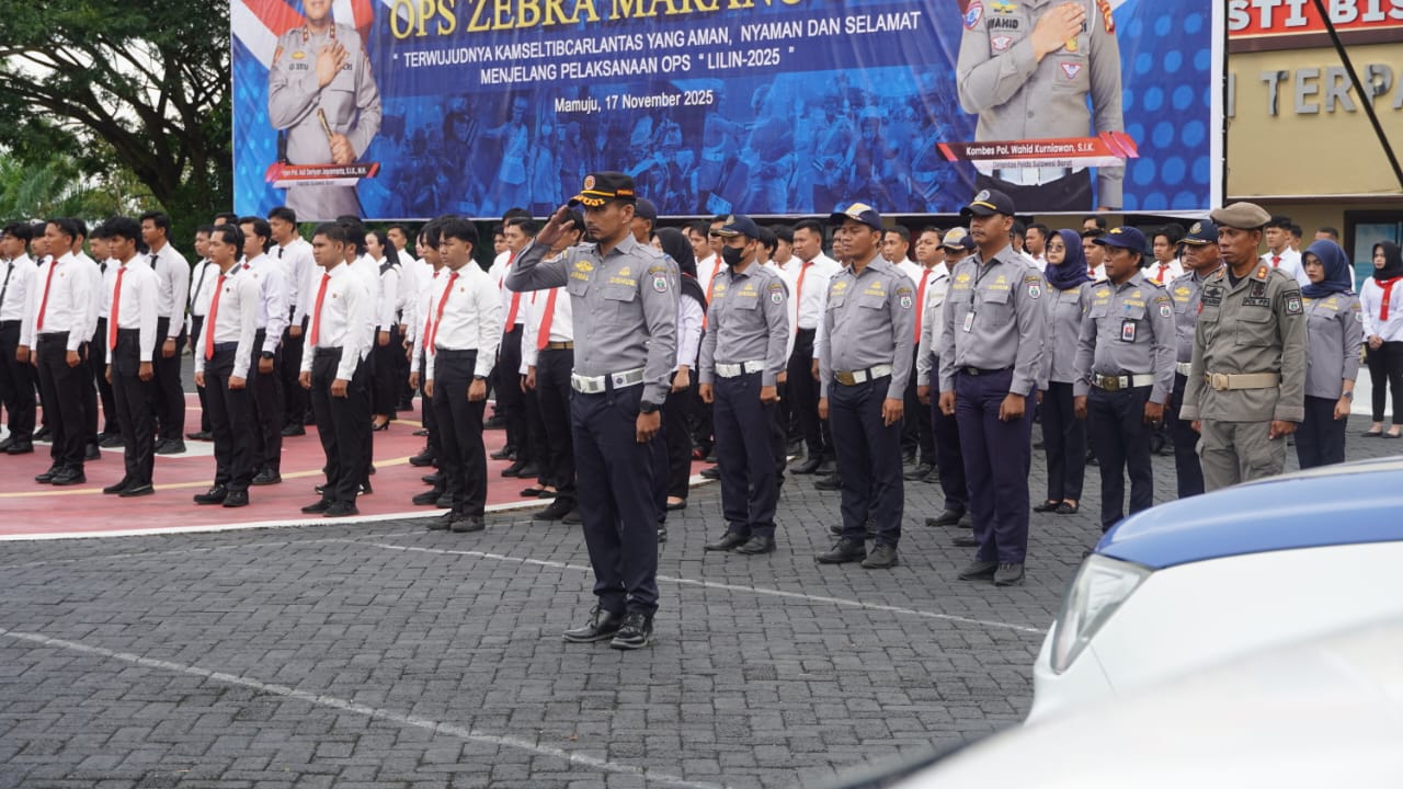 Mamuju, Jurnalsulbar.com — Dinas Perhubungan Provinsi Sulawesi Barat (Sulbar) menghadiri Apel Gelar Pasukan Operasi Zebra Marano 2025, di Lapangan Tribrata Mapolda Sulbar, Senin (17/11/25).