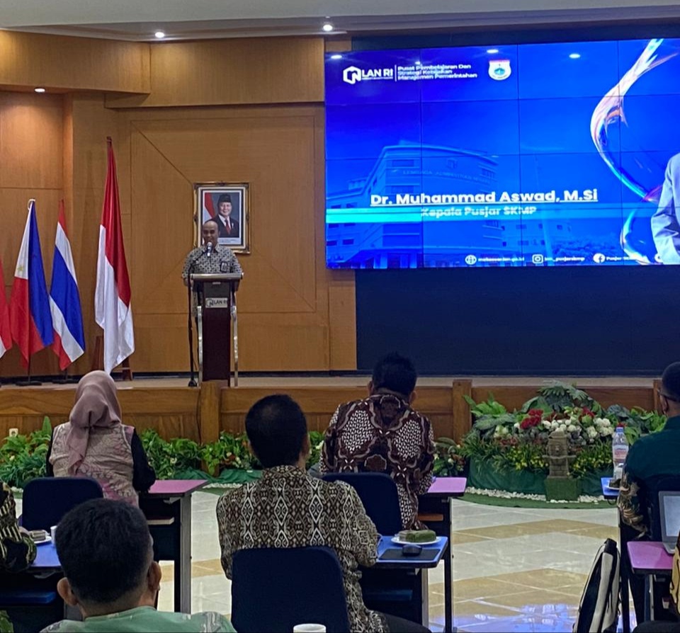 Setelah pembukaan, acara dilanjutkan dengan sambutan dari Muhammad Aswad, Kepala Pusat Penilaian Kompetensi ASN (Pusjar SKMP) LAN Makassar, yang menyampaikan komitmen LAN dalam mendukung peningkatan kapasitas manajerial pejabat daerah melalui proses assessment yang objektif dan profesional.
