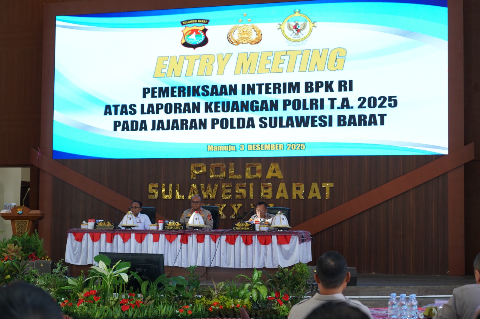 Mamuju, Jurnalsulbar.com — Dalam rangka memastikan pengelolaan keuangan negara yang optimal dan sesuai aturan, Polda Sulawesi Barat (Sulbar) menggelar acara Entry Meeting pemeriksaan interim dari Badan Pemeriksa Keuangan (BPK) RI atas laporan keuangan Polri Tahun Anggaran 2025.
