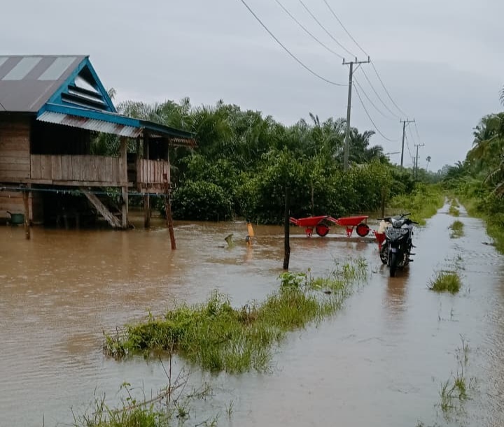 Akibat kejadian tersebut, beberapa rumah warga terdampak genangan air. Selain itu, fasilitas umum seperti PAUD serta akses jalan desa turut terendam, sehingga mengganggu aktivitas masyarakat setempat.