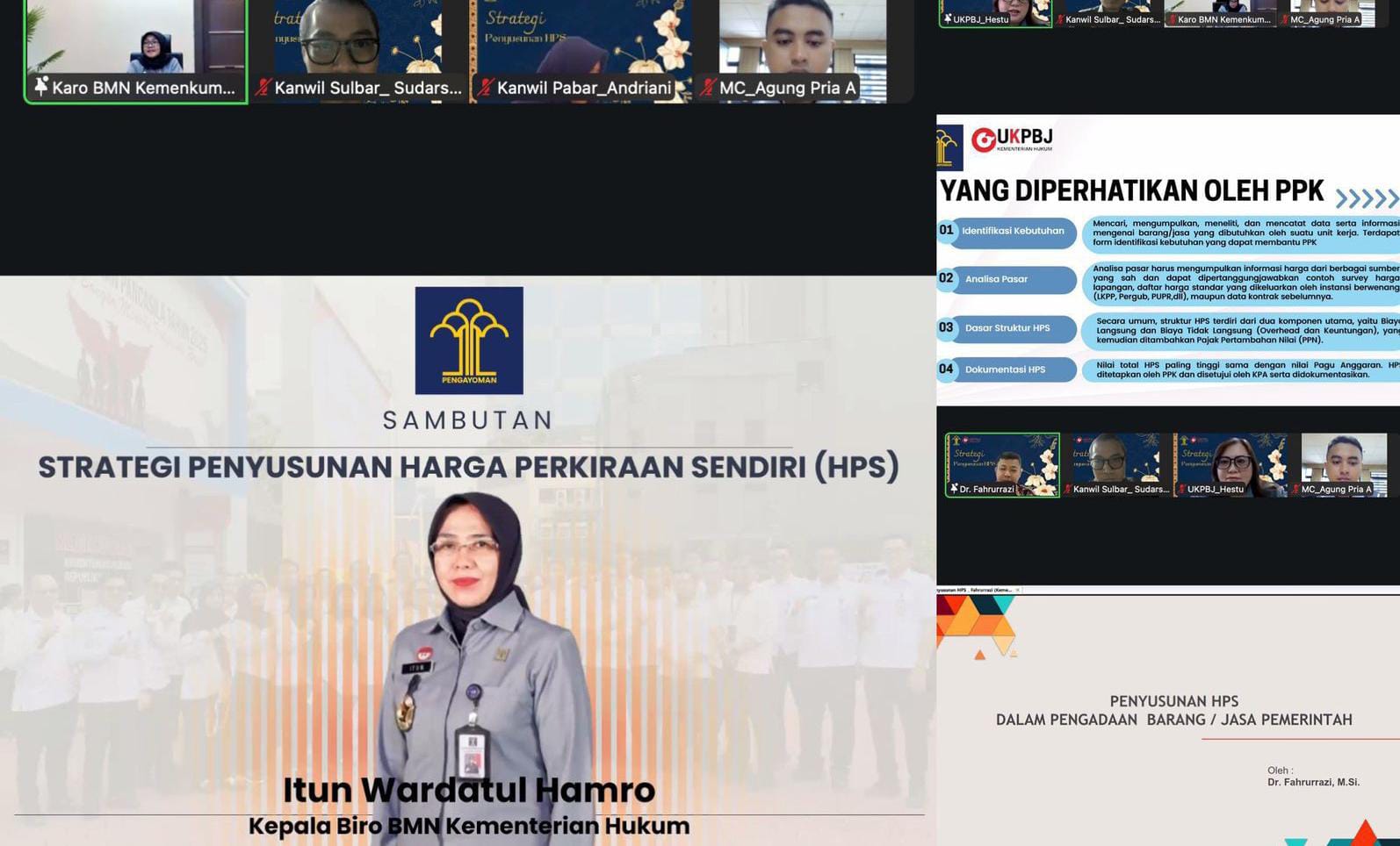Mamuju, Jurnalsulbar.com – Kantor Wilayah Kementerian Hukum Sulawesi Barat menghadiri Bimbingan Teknis Strategi Penyusunan HPS secara virtual, selasa (7/10/2025).