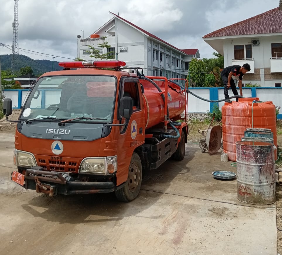 Distribusi air bersih dilakukan dengan menggunakan armada tangki BPBD Sulbar dan disalurkan langsung ke kantor BNNP Sulbar guna mendukung kelancaran aktivitas pelayanan dan operasional perkantoran.